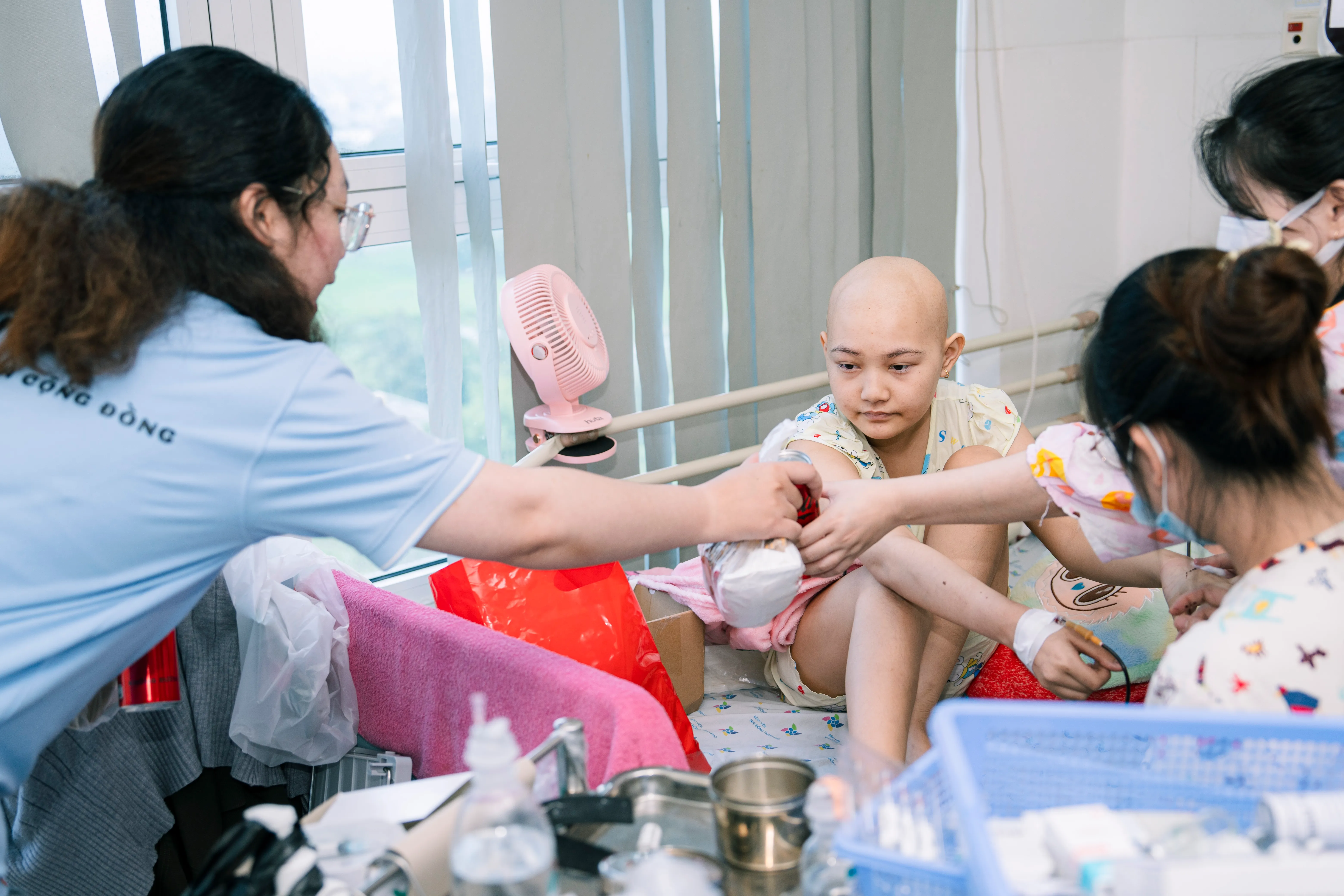Yet in those clear, innocent eyes, faith and hope still shine: to be healthy again, to go home, to paste red couplets with mom and dad, to stroll through the Tết market with their siblings. Despite their frail bodies, the children keep in their hearts a beautiful spring, a simple dream full of resilience.